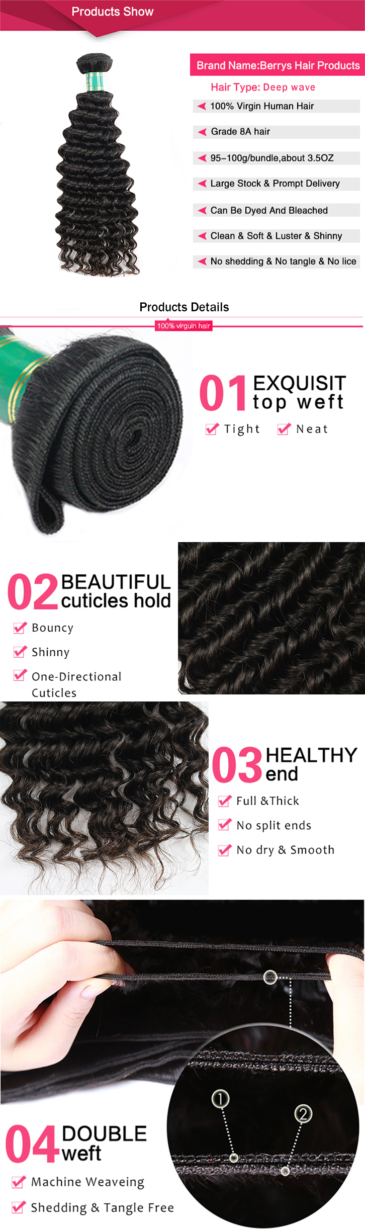 10-30inch Wholesale 5pcs/lot Indian Deep Wave/Curly Virgin Hair Good Quality Unprocessed Human Hair Berrysfashion Yellow Band Hair
