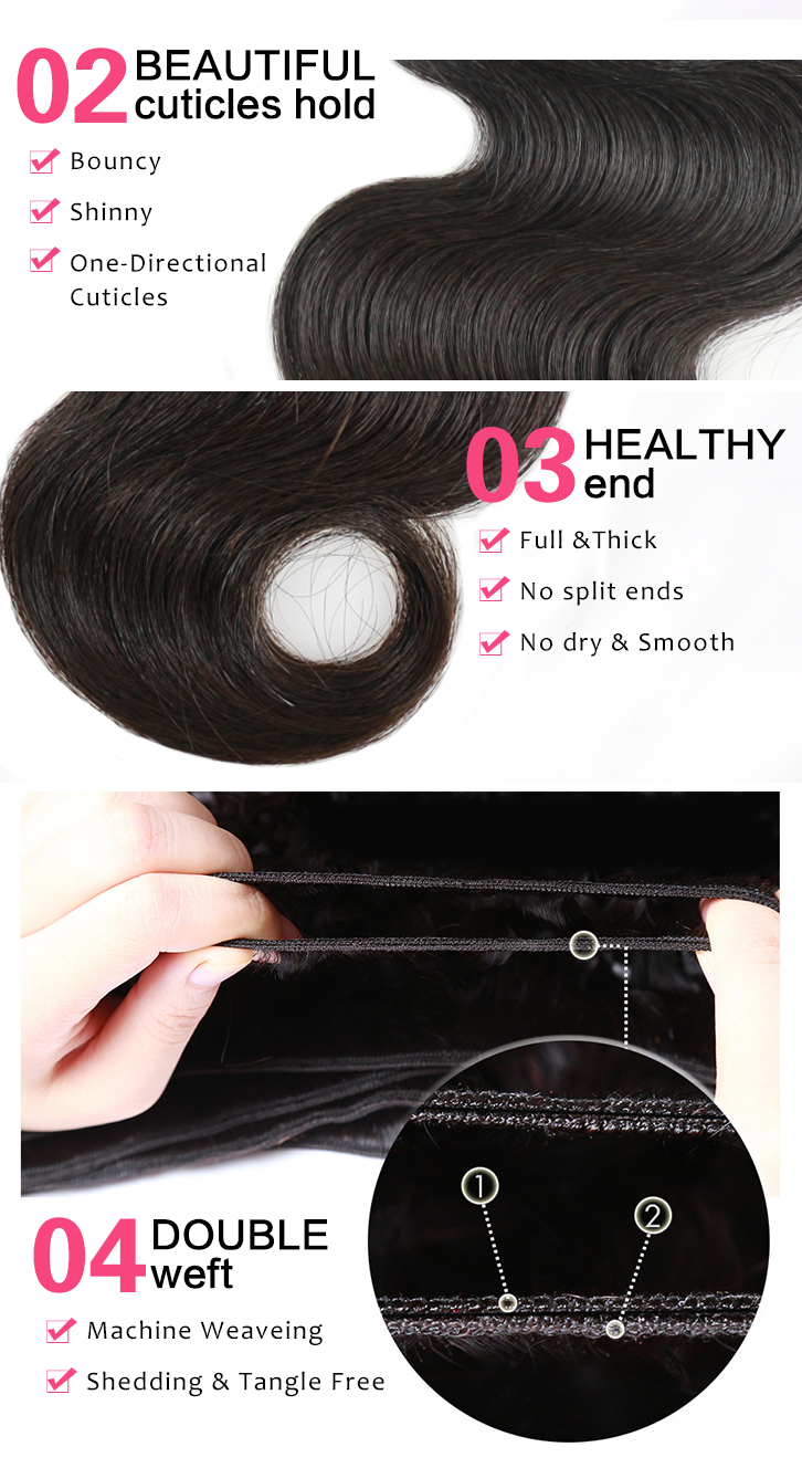 4 Bundles Body Wave Indian Hair 100% Unprocessed Virgin Hair Natural Color Wet and Wavy Human Hair