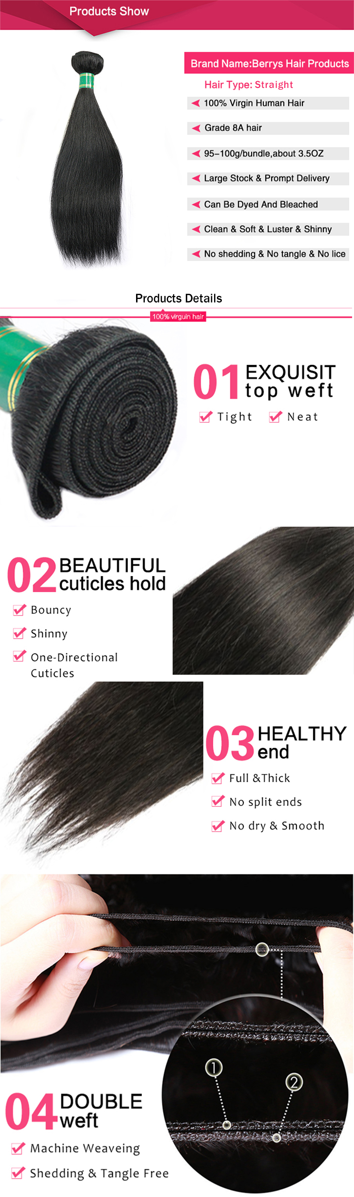 Berrys Fashion Hair Natural Color 4pcs/lot Brazilian Straight Hair Weave 100% Unprocessed Virgin Brazilian Hair